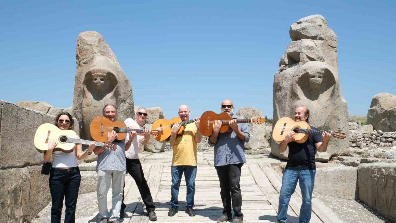 Çorum Belediyesi’nin ev sahipliğinde düzenlenen "Gitar Anavatanında" konseri için kente gelen dünyaca ünlü gitar sanatçıları, Hititlerin antik kentlerini ziyaret etti.