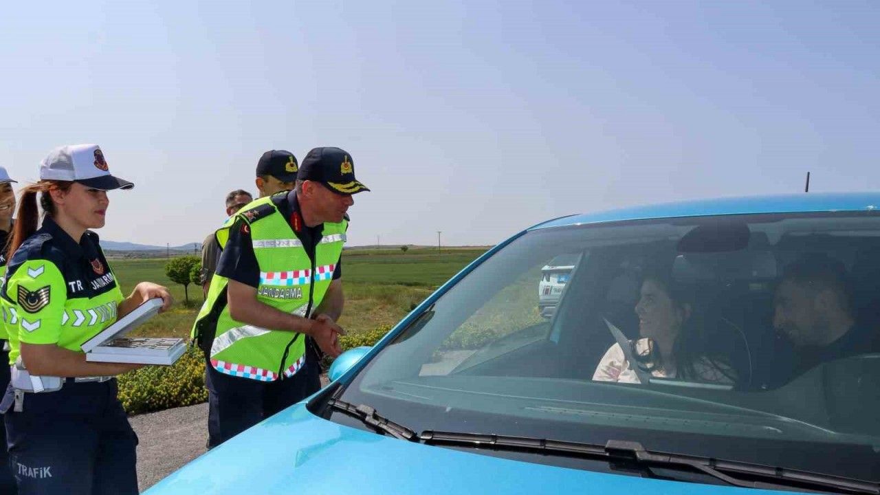 Kayseri İl Jandarma Komutanı Tuğgeneral Hakan Dedebağı; alınan trafik tedbirlerini yerinde kontrol ederek sürücüleri trafik kuralları hakkında bilgilendirdi.