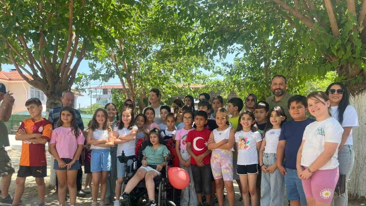 Aydın’ın İncirliova ilçesindeki Hürmüs Ayaydın İlkokulu 3/D sınıfı öğrencileri, Kurban Bayramı harçlıklarını biriktirerek aldıkları 6 akülü tekerlekli sandalyeden ilkini, aynı okulda eğitim gören serebral palsi hastası 9 yaşındaki arkadaşları Hira Aşıcı’ya hediye etti.