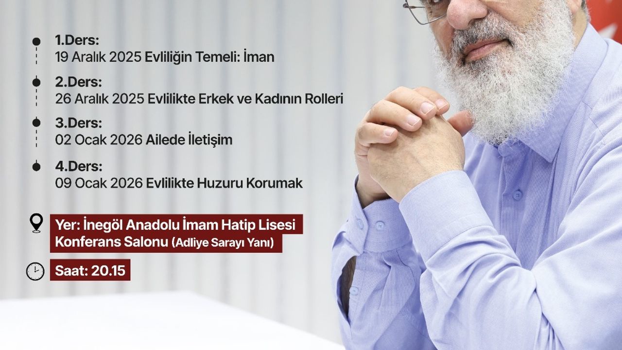 Anadolu Gençlik Derneği İnegöl Temsilcisi Eyyüp Aydınlı imzasıyla yapılan açıklamada, iman ve sevgi temelli aile yapısının toplumun en güçlü dayanaklarından biri olduğu vurgulandı. Açıklamada, tüm vatandaşlar programa davet edilerek, çalışmanın ailelerin ve toplumun geleceğine katkı sunmasının hedeflendiği bildirildi.