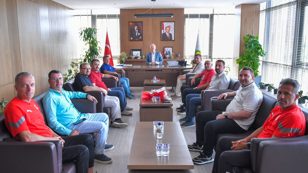 Sultan Su İnegölspor'un yeni oluşturulan altyapı yönetim kurulu, Gençlik Geliştirme Sorumlusu Özgür Şahin ve teknik heyetle birlikte, protokol ziyaretleri kapsamında İnegöl Belediye Başkanı Alper Taban'ı makamında ziyaret etti.