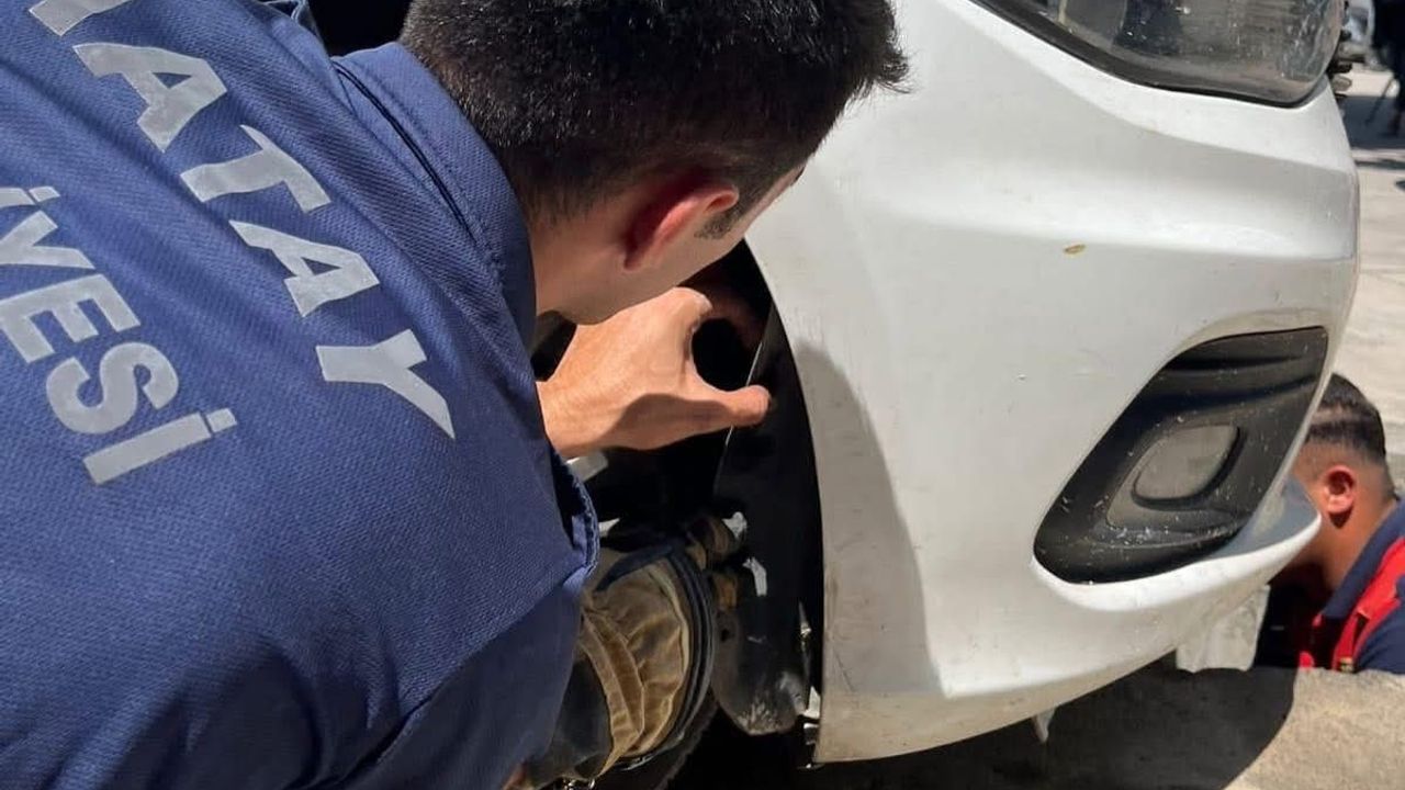 Hatay’da aracın kaputuna giren yavru kediyi itfaiye ekipleri kurtardı.