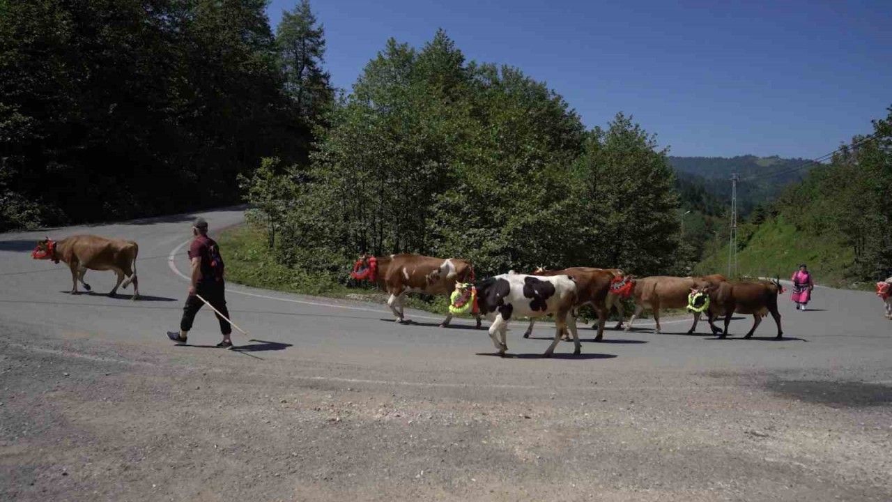 Trabzon’un birçok ilçesinde coşkulu ve renkli görüntülere sahne olan yayla göçünde hayvanlarını süsleyip çanlarla donatan yaylacılar, yöresel giysiler eşliğinde adeta geçmişle gelecek arasında kültürel bir köprü kuruyor.