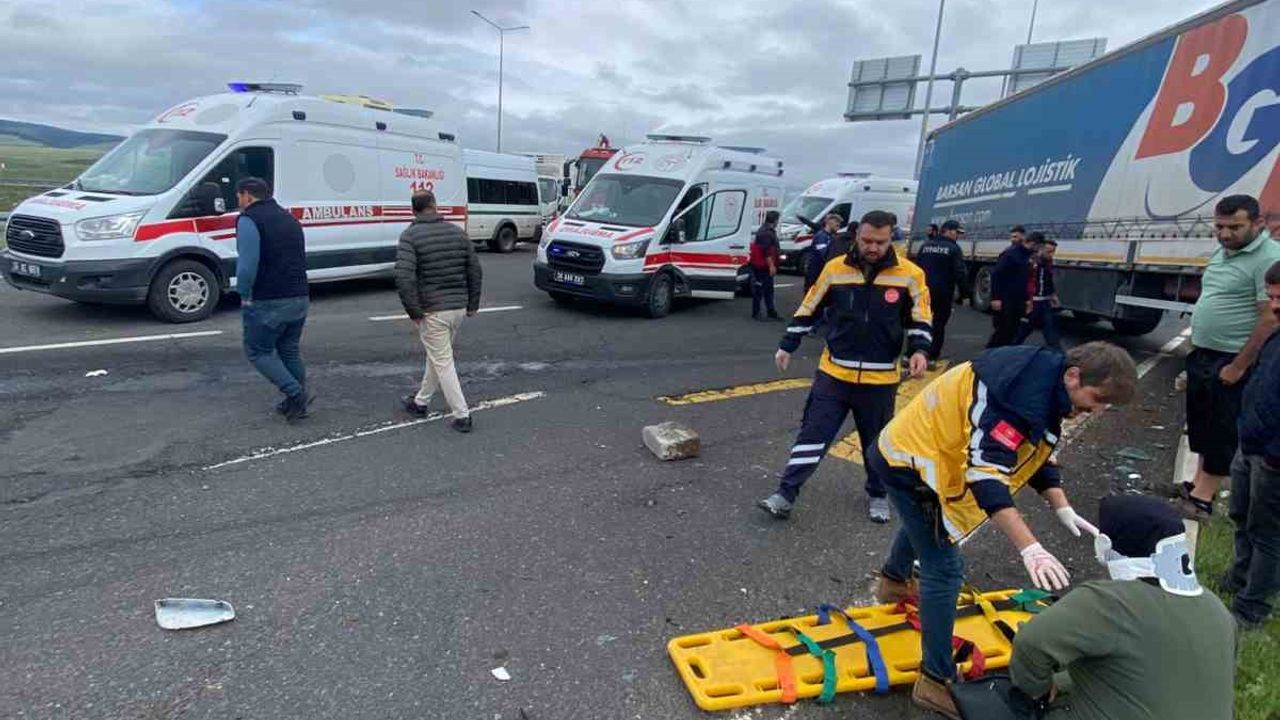 Öte yandan tır ile otomobilin çarpıştığı bölge adeta savaş alanına döndü. Tır ile çarpışan otomobil hurda haline gelirken, trafik levhaları ise yan yattı. Araçların parçaları ise etrafa savruldu. Kaza ile ilgili tahkikat başlatıldı.