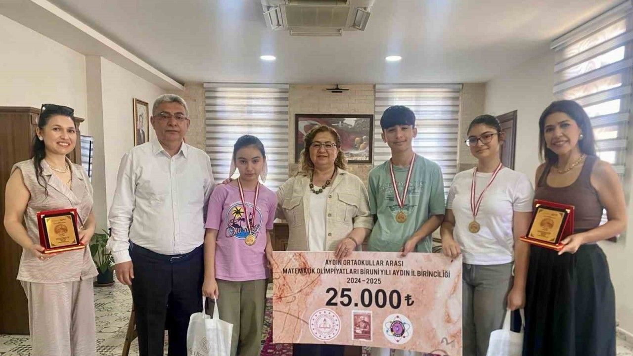 Germencik Kaymakamı Sultan Doğru Aydın’da düzenlenen Ortaokullar Arası Matematik Olimpiyatları’nda birincilik elde eden Murat İrem Delgen Ortaokulu öğrencilerini ağırlayarak ödüllendirdi.