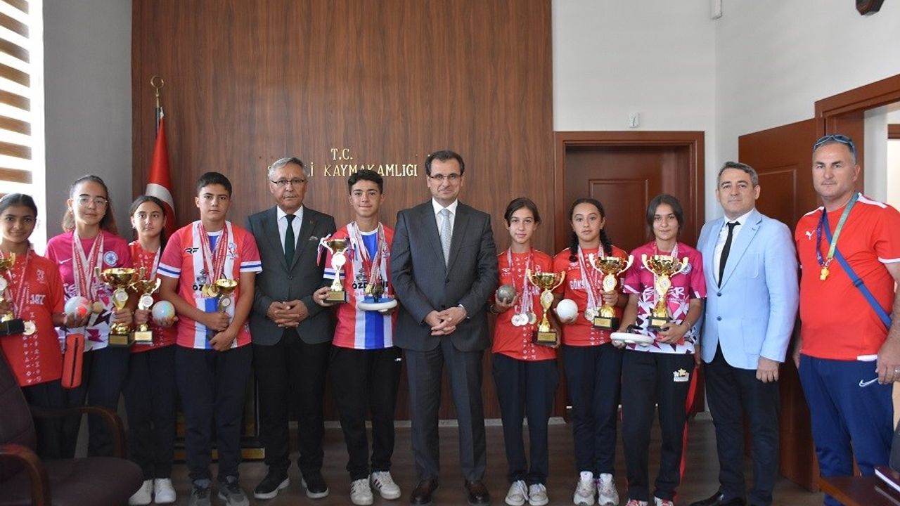 İlçe Milli Eğitim Müdürü Mahmut Yenen, Okul Müdürü Muhammet Mustafa Demir ve Beden Eğitimi Öğretmeni İrfan Arslan’ın yer aldığı ziyarette Kaymakam Güldoğan, öğrencileri tebrik ederek başarılarının devamını diledi.