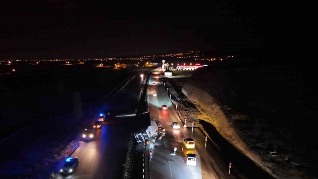 112 Acil Çağrı Merkezi’ne yapılan ihbar üzerine olay yerine polis ve itfaiye ekipleri sevk edildi. Trafik ekiplerince yol güvenliği sağlanarak araç trafiği alternatif yoldan yönlendirildi. İtfaiye ekipleri tarafından da tırın yanma riskine karşı tedbir alındı. Kazaya ilişkin inceleme başlatıldı.