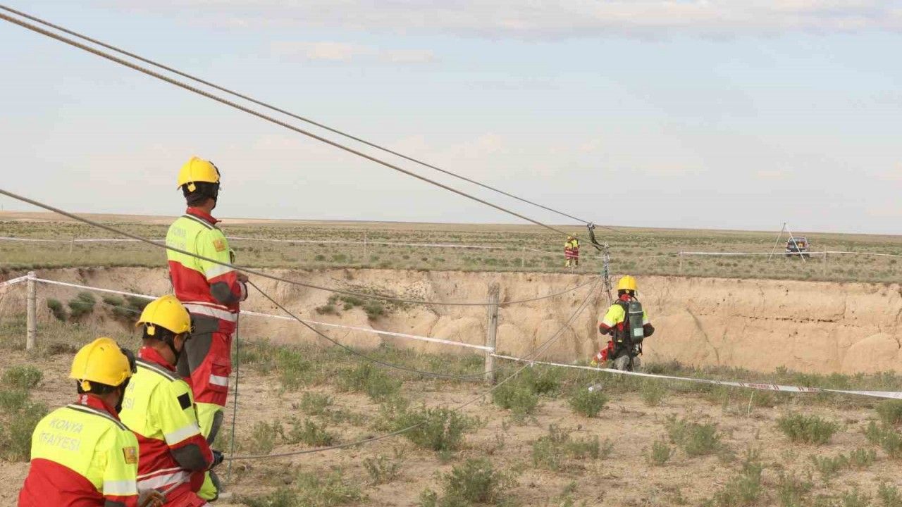 Tatbikat hakkında bilgi veren Konya Büyükşehir Belediyesi İtfaiyesi Arama-Kurtarma Amiri Emre Yılmaz, "Herhangi bir canlı bu obruklarda mahsur kalırsa bu tarz kurtarma operasyonlarında etkin rol alıp üzerimize düşen görevi en iyi şekilde yerine getirebilmek adına kurtarma tatbikatı gerçekleştirdik. Vakalarda kurtarmanın durumuna göre senaryo gereği istediğimiz araç ve ekipmanlarla kurtarma senaryosunu kafamızda canlandırırız. Arazi şartlarının zayıf yapısı neticesiyle biz buraya çok tonajlı araçları yaklaştırmayız. Mevcut müdahale araçlarımızla kullanmış olduğumuz kaz ayağı diye tabir ettiğimiz ankraj noktalarımızın üzerine bir istasyon kurulumu yaptık. Yaklaşık 60 metre çapa ve 30 metre derinliğe sahip bir obrukta çalışmamızı başarılı şekilde icra ettik" diye konuştu.