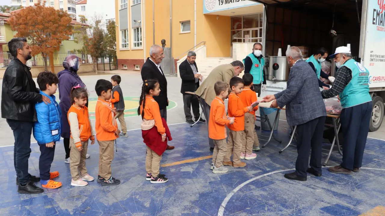 Konya'da Cansuyu Yardımlaşma ve Dayanışma Derneği Konya ve Karaman temsilcilikleri tarafından birlikte organize edilen programda Karaman 19 Mayıs İlkokulu öğrencilerine çorba ikramında bulundu.