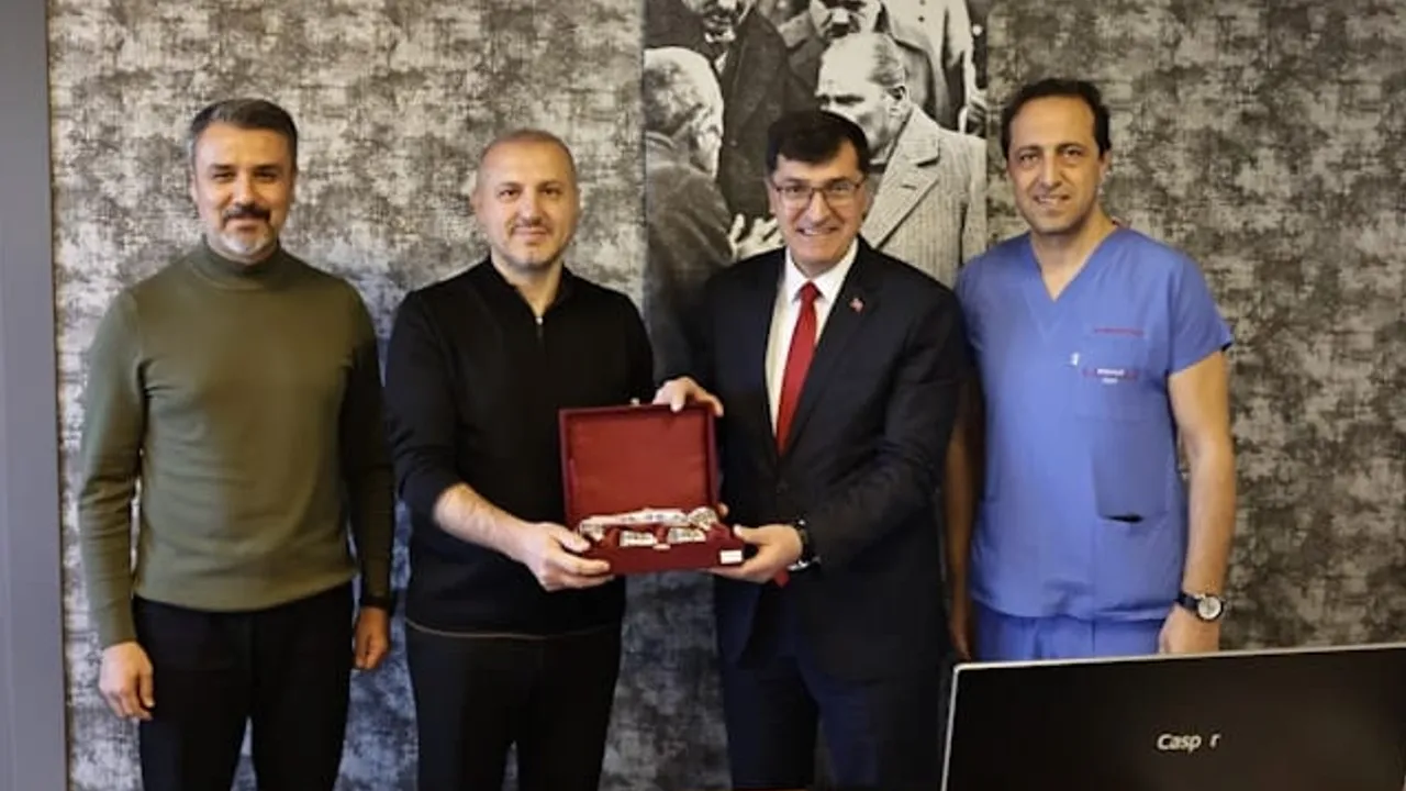 Başkan Kahveci, hastane yönetiminden Uzm. Dr. M. Hilmi Koputan, Dr. Gökalp Çağrı Öztürk ve Hastane Direktörü Uğur Harmanda ile yaptığı görüşmede, sağlık alanında sunulan nitelikli hizmetlerin Kütahya için önemli bir kazanım olduğunu ifade etti.