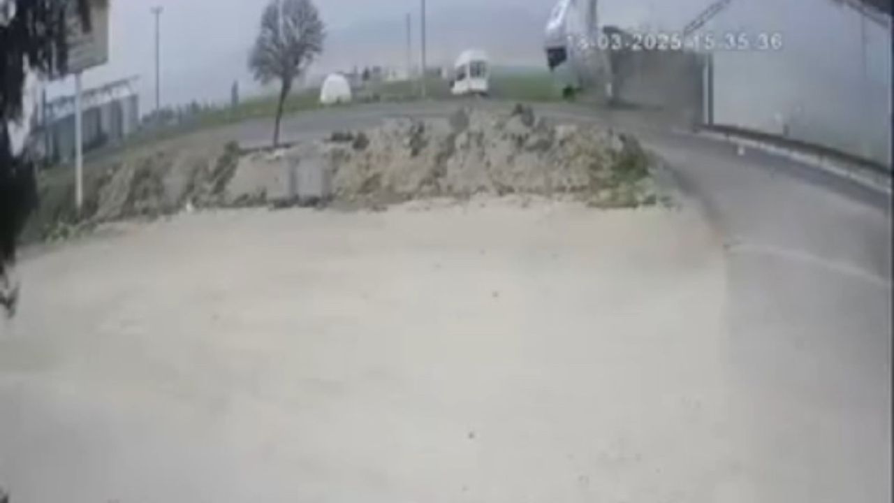 Mardin’in Kızıltepe ilçesinde KGYS direğine çarpan tırın devrilmesi sonucu sürücü yaralandı. O anlar güvenlik kamerasına yansıdı.