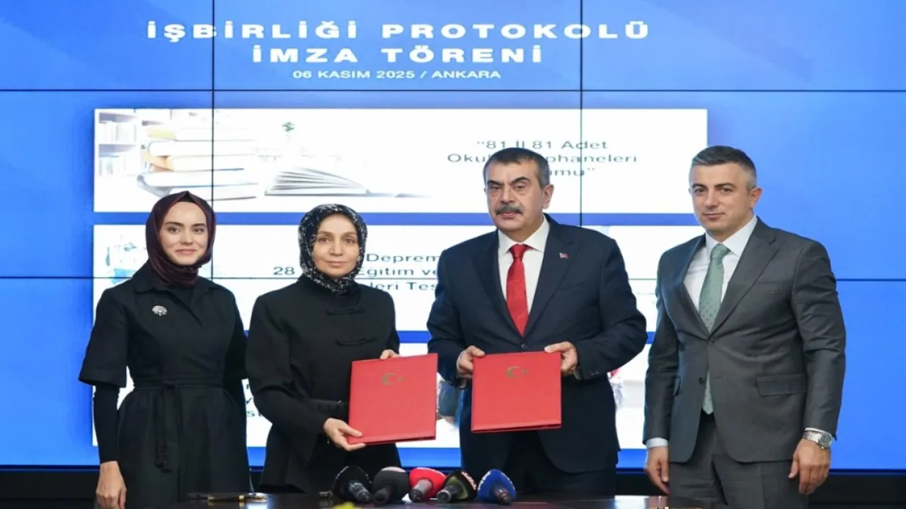 ANKARA (İGFA) - Millî Eğitim Bakanlığı ile Şule Yüksel Şenler Vakfı arasında 'Okul Kütüphanelerinin Kurulumu ve Geliştirilmesine Yönelik İş Birliği Protokolü', Bakanlık'taki Öğretmenler Odası Toplantı Salonu'nda imzalandı.