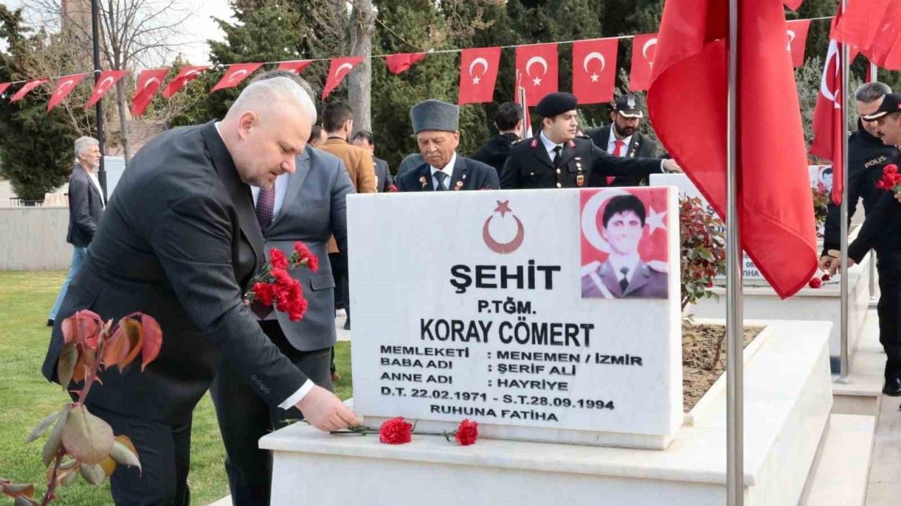 Şehitlikte düzenlenen resmi törende; Türkiye Harp Malulü Gaziler, Şehit, Dul ve Yetimleri Derneği Menemen Temsilcisi Fatih Aslan tarafından günün anlam ve önemini belirten konuşma yaptı. Okunan duaların ardından Şehit kabirlerine karanfil bırakıldı.