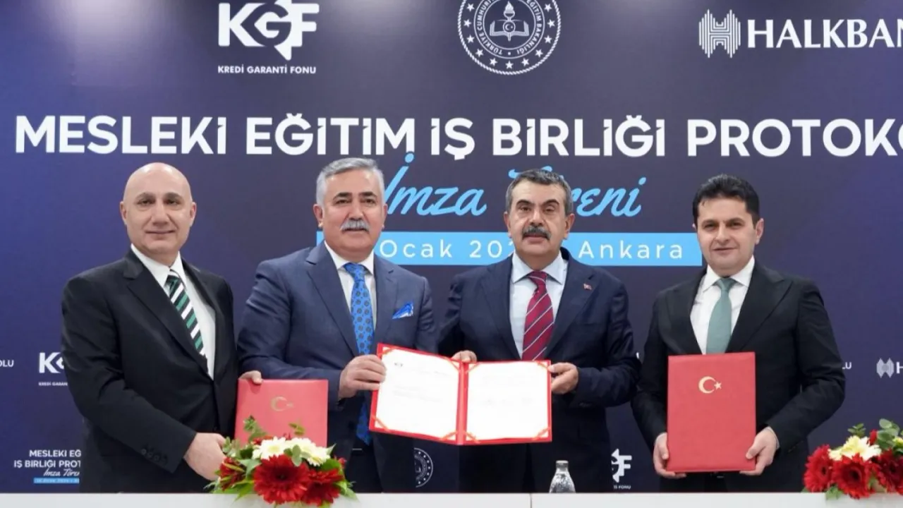 Mesleki ve teknik ortaöğretim mezunu 29 yaş ve altı gençlerin kendi işlerini kurmalarını ve istihdam edilmelerini teşvik etmek amacıyla Milli Eğitim Bakanlığı, Kredi Garanti Fonu (KGF) ve Halkbank arasında iş birliği protokolü imzalandı.
