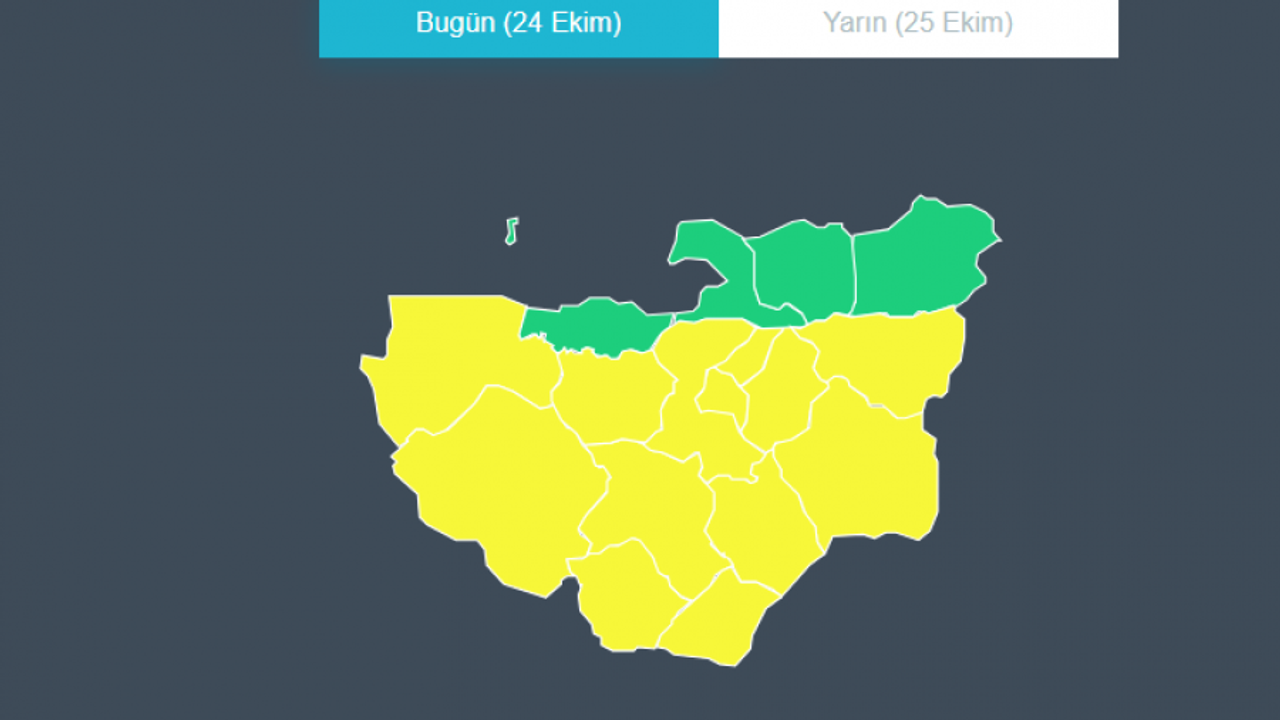 Sarı Uyarı Kapsamındaki İlçeler (13 İlçe)