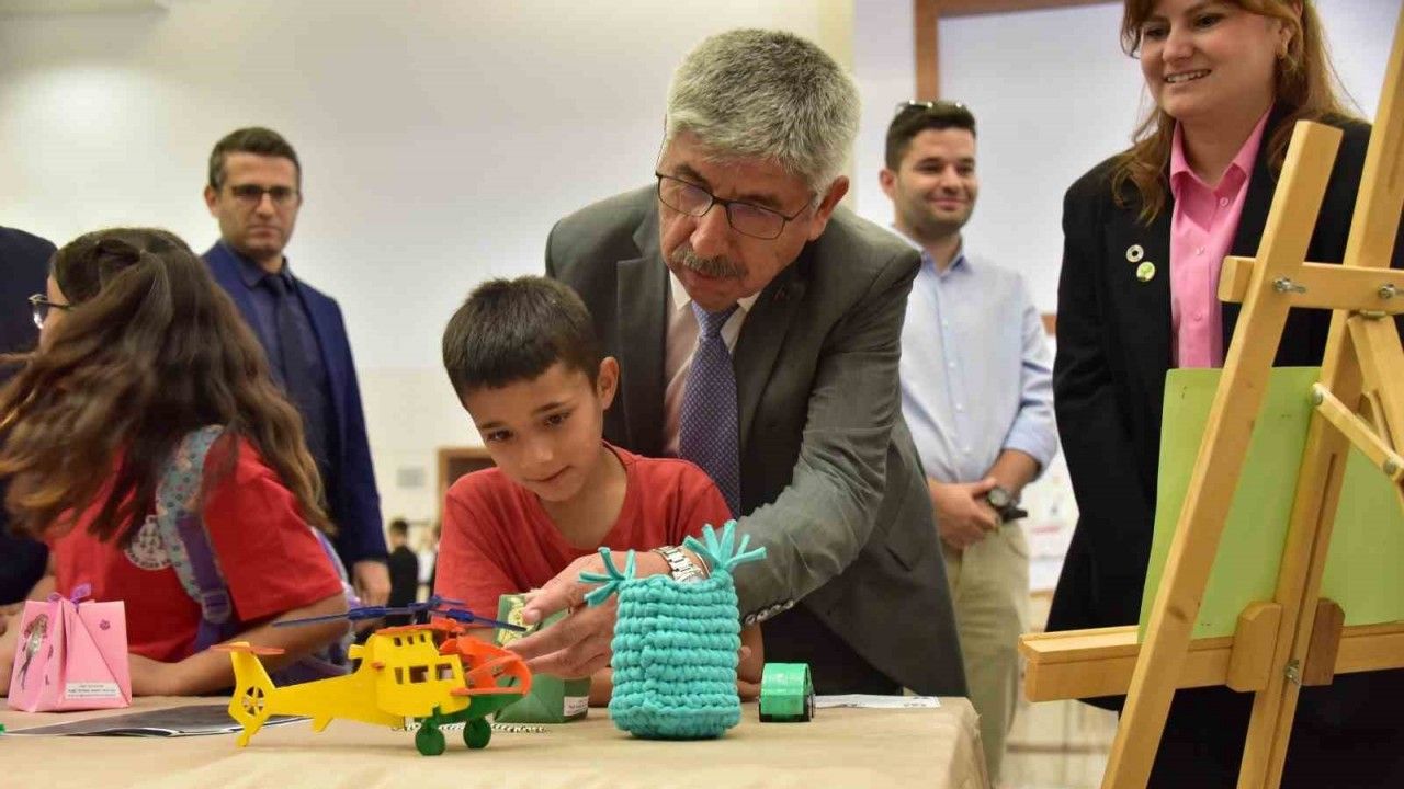 Sergide, öğrencilerin geri dönüşüm ve sürdürülebilirlik temalı hayal gücünü yansıttıkları tasarım çalışmaları yer alırken, interaktif ve eğitici atölye ürünleri de ziyaretçilerin ilgisine sunuldu.