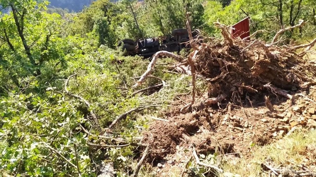 Ankara’nın Nallıhan ilçesinde, freni boşalan bir itfaiye aracı ormanlık alanda uçurumdan yuvarlandı.