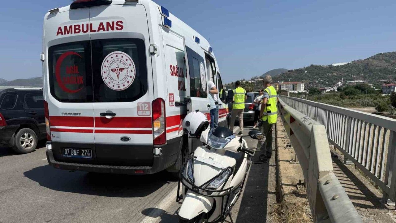 Kaza, saat 15.00 sıralarında D-400 Karayolu üzerindeki Gazipaşa Köprüsü’nde meydana geldi. Edinilen bilgiye göre, Gazipaşa istikametinden Anamur yönüne seyreden Cemile K. idaresindeki Tofaş marka 07 EL 967 plakalı otomobil, iddiaya göre başka bir araç tarafından sıkıştırılınca Erhan B. idaresindeki 07 BPT 299 plakalı motosikletle çarpıştı. Çarpışmanın etkisiyle devrilen motosikletten asfalt zemine düşen motosiklet sürücüsü Erhan B., kazada yaralandı. Çevredekilerin 112 Acil Çağrı Merkezine yaptığı ihbarın ardından olay yerine polis ve sağlık ekipleri sevk edildi. İlk müdahalesi olay yerinde yapılan yaralı, ambulansla Gazipaşa Devlet Hastanesine kaldırılarak tedavi altına alındı.