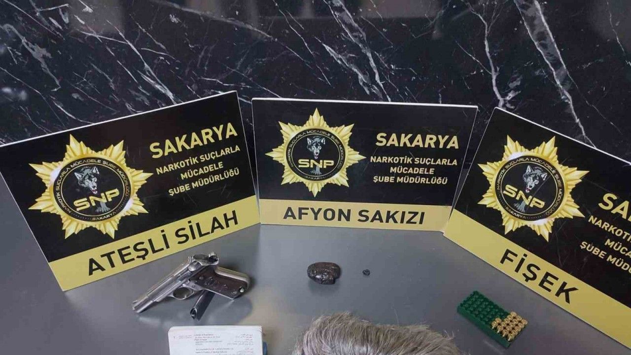 Söz konusu şahıs E.Ş., yanında bulunan O.B. (29) ve S.Ş. (49) ile birlikte yakalandı. Şüphelilerin içinde bulunduğu araçta ve üzerlerinde yapılan aramalarda, 46 gram afyon sakızı maddesi, üzerinde E.Ş. isimli şüphelinin fotoğrafının olduğu A.A. (İran) adına düzenlenmiş sahte kimlik ve sahte pasaport, peruk, ruhsatsız tabanca, 17 fişek ve, 44 bin 445 TL uyuşturucu madde ticaretinde kullanıldığı değerlendirilen para ele geçirildi.