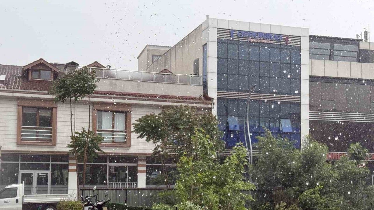 Meteoroloji Genel Müdürlüğü’nün uyarıları sonrasında Sakarya’da kısa süreliğine sağanak, dolu ve fırtına aynı anda etkili oldu.