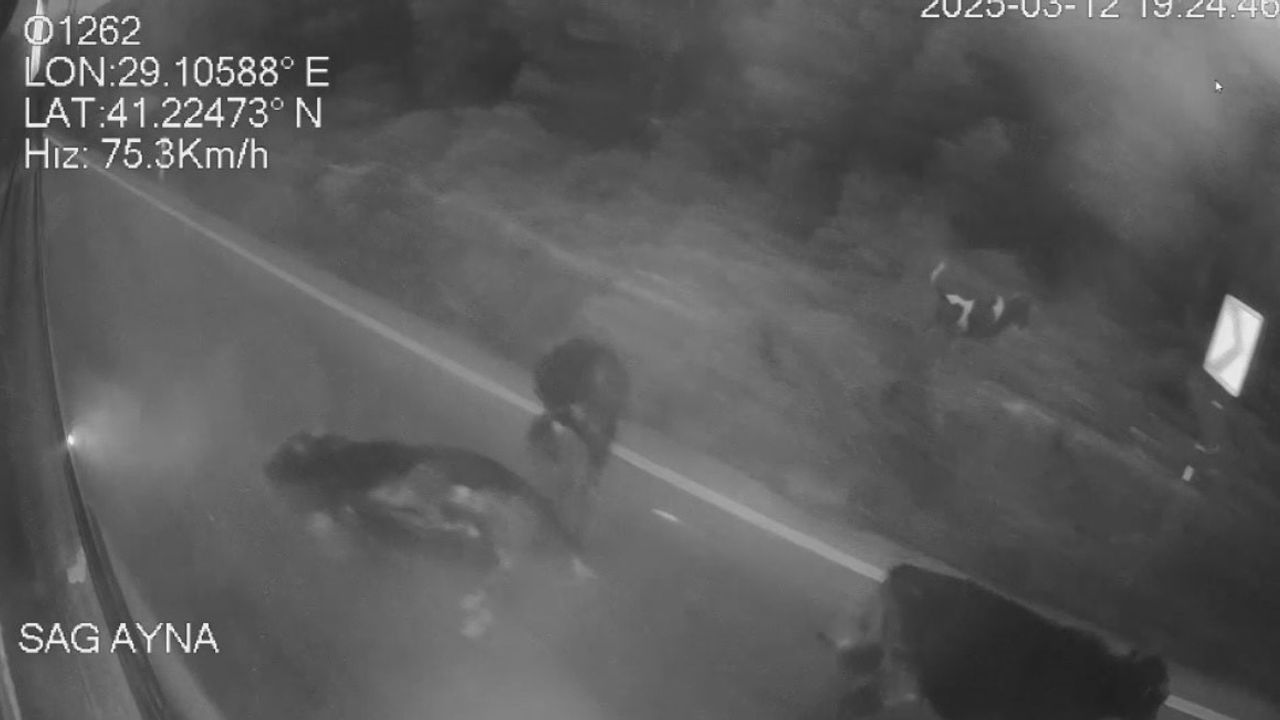 İETT otobüsü ile hafif ticari aracın çarpıştığı kaza anlarının güvenlik kamerası görüntüleri ortaya çıktı. Görüntülerde, otobüs şoförünün ineğe çarpmamak için manevra yaptığı anlar görülüyor. Otobüsün çarptığı inek yere düşerken, diğer hayvanlar ise kaçıyor.