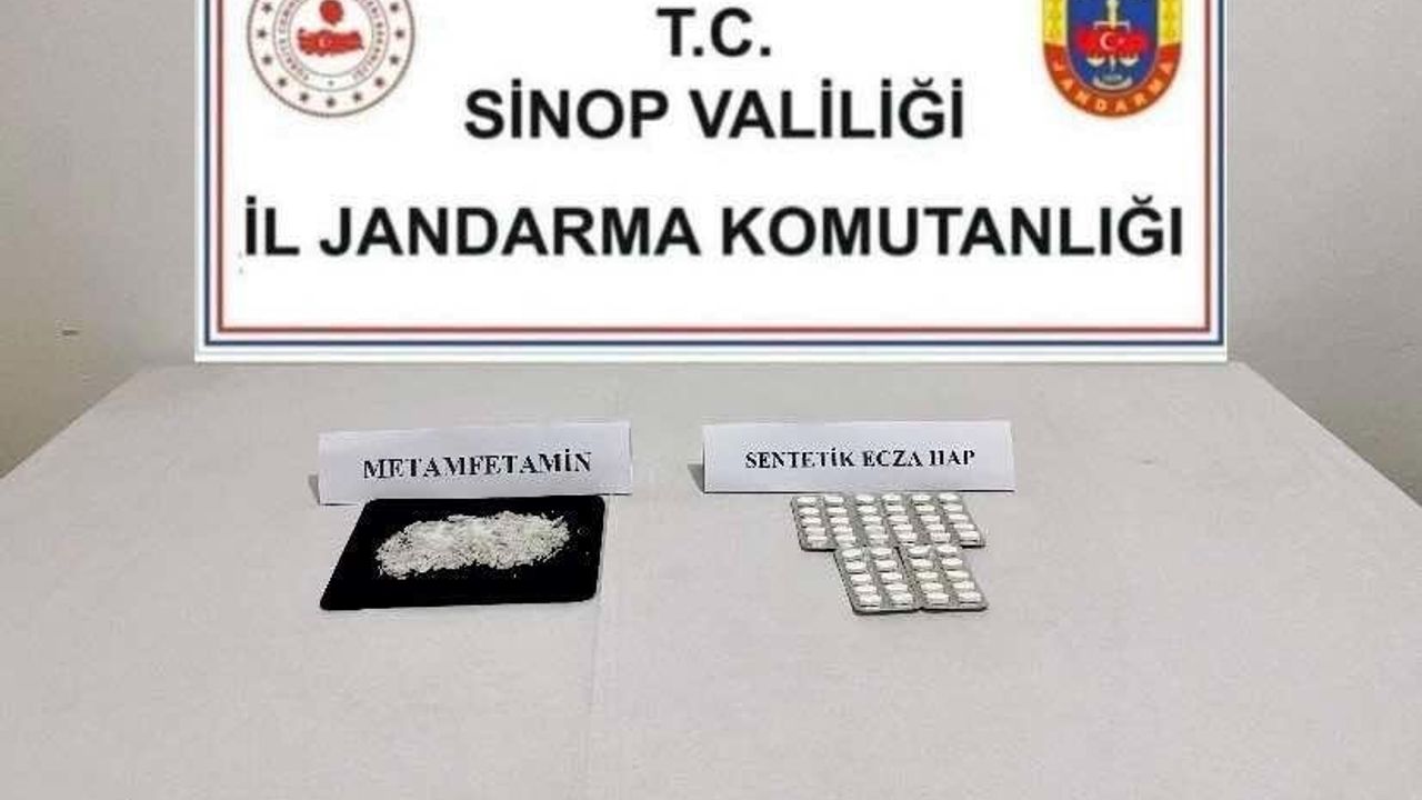 Sinop’ta düzenlenen operasyonda 15 gram metamfetamin ve 50 sentetik ecza hap ele geçirildi, 3 şüpheli hakkında adli işlem başlatıldı.