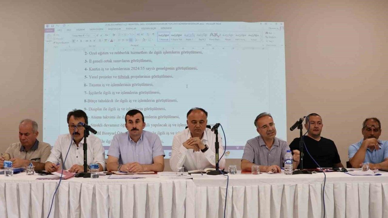 Merkez ilçedeki tüm resmi ve özel okul ile kurum müdürlerinin katıldığı toplantı, İl Milli Eğitim Müdürü Osman Cebeci başkanlığında Yetenek Atölyesi Konferans Salonu’nda gerçekleştirildi. Toplantıya ayrıca İl Milli Eğitim Müdür Yardımcıları ve şube müdürleri de katıldı.