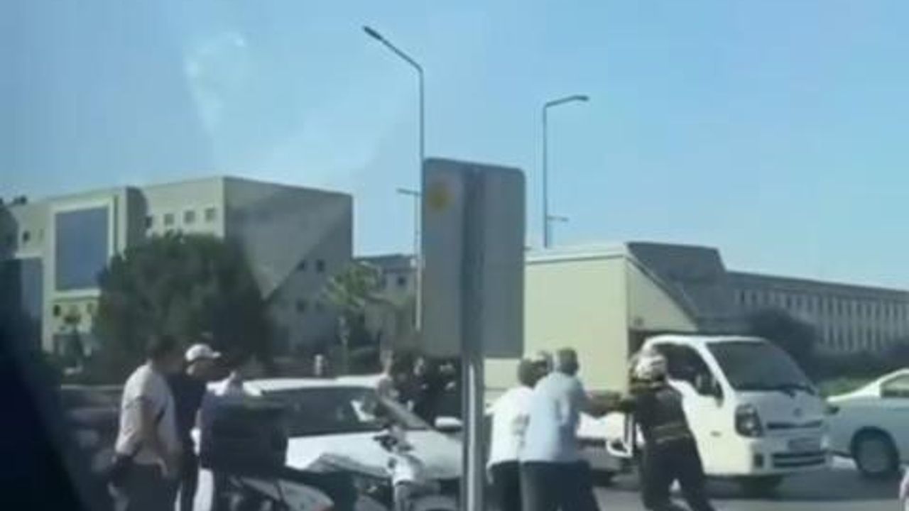 Bursa’da motokurye ile otomobil sürücüsü arasında yol verme meselesi yüzünden kavga çıkarken araya diğer sürücüler girdi.