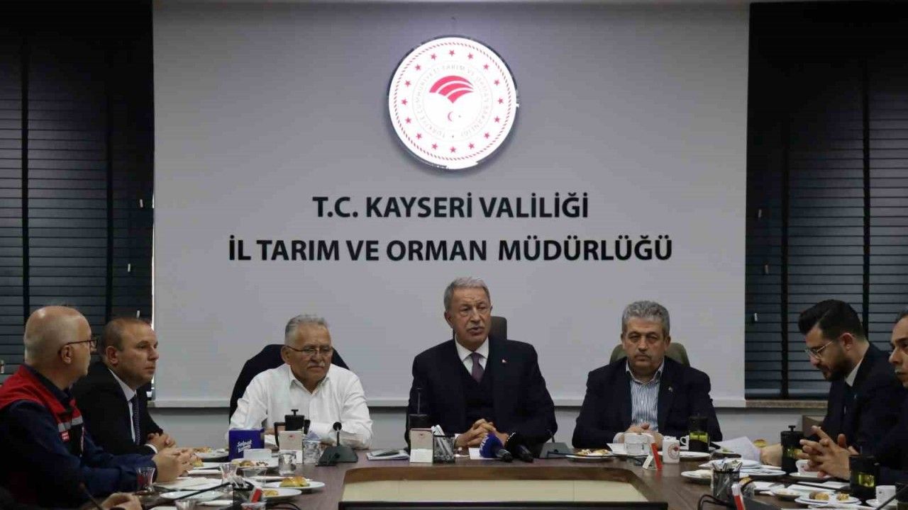 TBMM Milli Savunma Komisyonu Başkanı ve AK Parti Kayseri Milletvekili Hulusi Akar, İl Tarım ve Orman Müdürlüğü’nü ziyaret ederek, geçtiğimiz günlerde kentte meydana gelen don olayları ile ilgili İl Tarım ve Orman Müdürü Bülent Saklav’dan yapılan çalışmalar hakkında bilgiler aldı. Toplantının ardından konuşan Akar, "Her ülkenin ve her milletin olmazsa olmazı savunma ve güvenliktir. Savunma ve güvenlik bizim için çok önemlidir. Bu yapılırken diğer taraftan da insanların yemesi, içmesi, rahatı, huzuru ve refahı da çok önemlidir. En büyük savunma ve güvenlik konusu herkesin tok ve rahat içinde olması. Tarım ve ormanla alakalı yapılan çalışmalarda bunu kapsamaktadır. 86 milyon vatandaşımızın refahı için, 86 milyon için gayret gösteriyoruz. Kayseri sanayi, ticaret ve turizm şehri diyoruz ama Kayseri aynı zamanda ciddi bir tarım ve hayvancılık şehri. Zirai ürünlerde Kayseri’nin ilk 10’da olması da bunu açık bir göstergesidir. Bununla yetinmeyeceğiz. Çalışmalarımızı artan bir gayretle yapacağız. Bu devletin ve milletin işidir. Bunu yaptığımız zaman ki insanların mutluluğu bizim en büyük sevincimiz" ifadelerini kullandı.