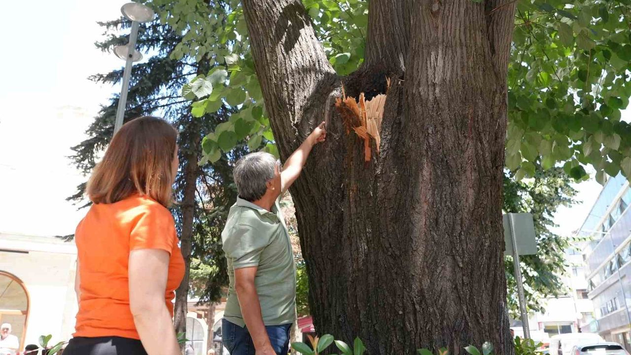 İçi çürüyen ağaç ise ekipler tarafından kontrollü olarak kesildi.