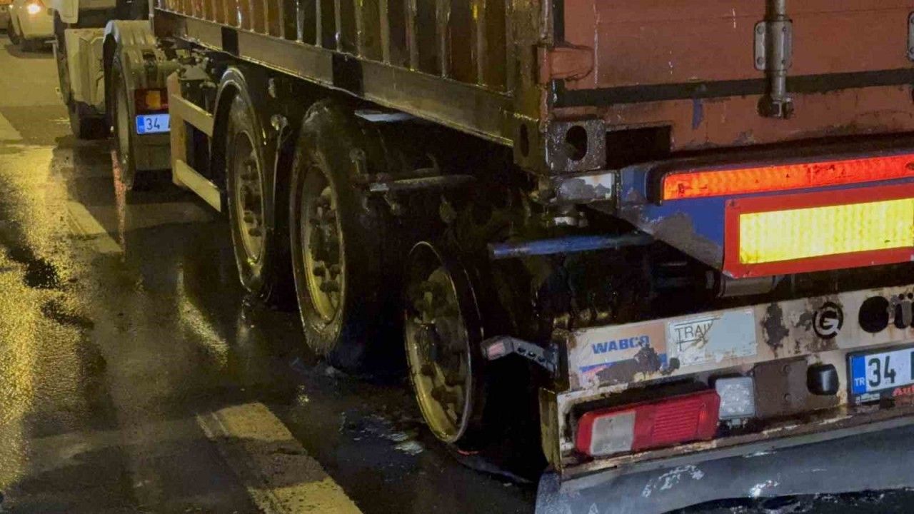 Kocaeli TEM Otoyolu’nda seyir halinde olan konteyner yüklü tırın 3 lastiği alev aldı. Yangın, itfaiye ekipleri tarafından söndürüldü.