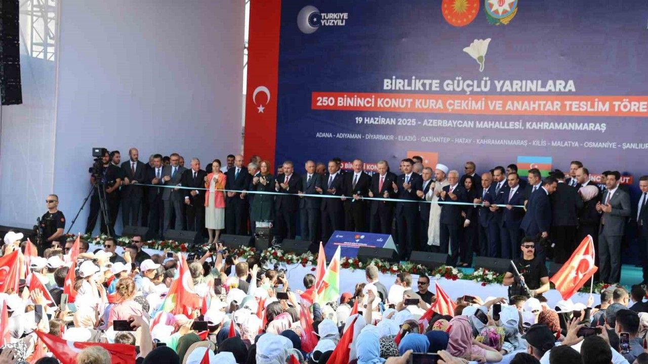 Asrın felaketi, 6 Şubat depremlerinin merkezi Kahramanmaraş ağır hazar almıştı. Depremin hemen ardından Azerbaycan bölgeye önemli miktarda yardım malzemesi ve arama kurtarma ekipleri gönderdi. Azerbaycan hükümeti ayrıca Kahramanmaraş’ta bin 183 konut ve bin 595 dükkandan oluşan Azerbaycan’ın Mahallesi’nin inşasını üstlendi. İnşası tamamlanan konut ve dükkanlar bugün Cumhurbaşkanı Recep Tayyip Erdoğan ve Azerbaycan Cumhurbaşkanı İlham Aliyev’in katıldığı törenle hak sahiplerine teslim edildi. Törenle ayrıca depremin etkilendiği illerde TOKİ tarafından yapımı tamamlanan 49 bin 56 iş yeri ve konutun da kurası ve anahtar teslimleri gerçekleştirildi. Kurası çekilen ve anahtar teslimleri yapılan konutlarla birlikte toplam teslim edilen konut sayısı 250 bini geçti.