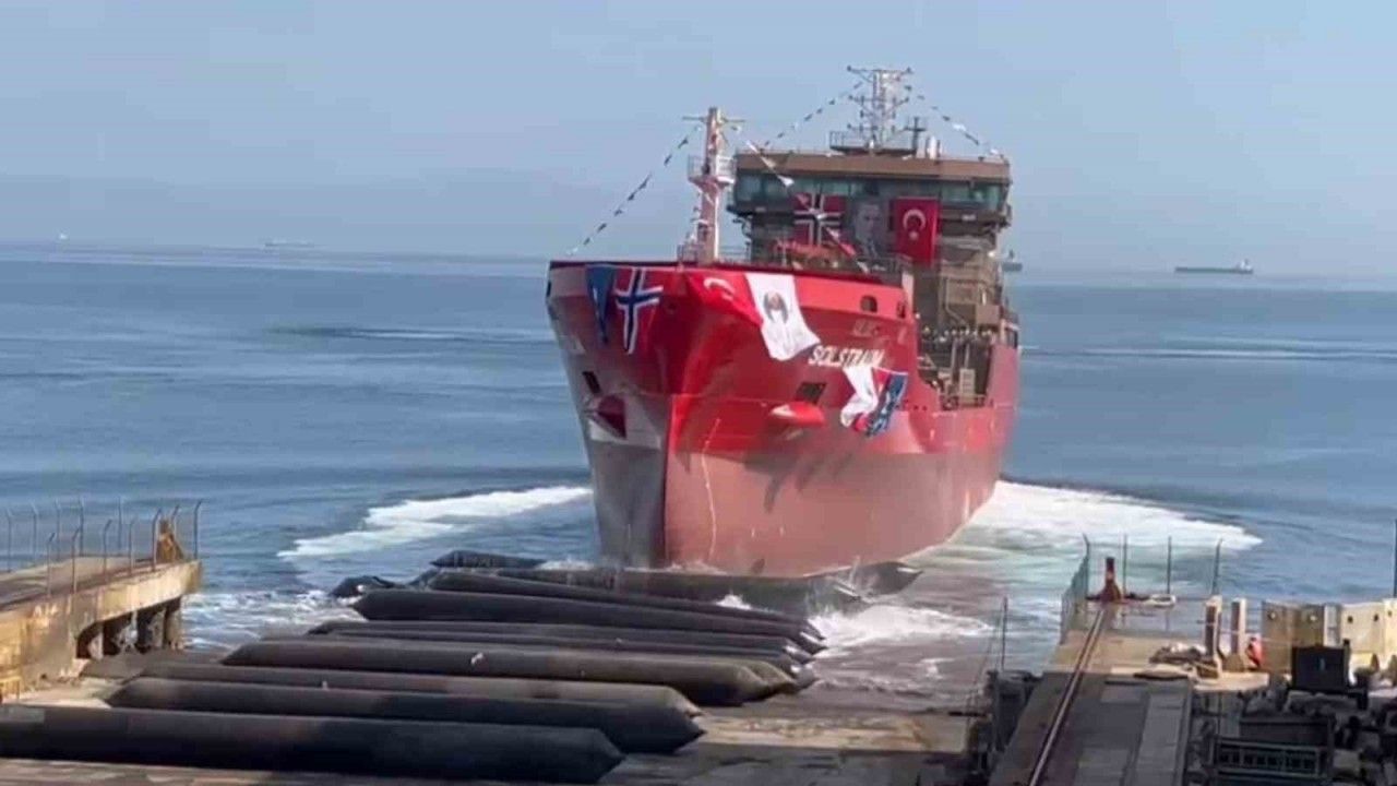 Türk mühendislerce inşa edilen dört hibrit kimyasal tanker serisinin üçüncü gemisi olan Solstraum denize indirildi.