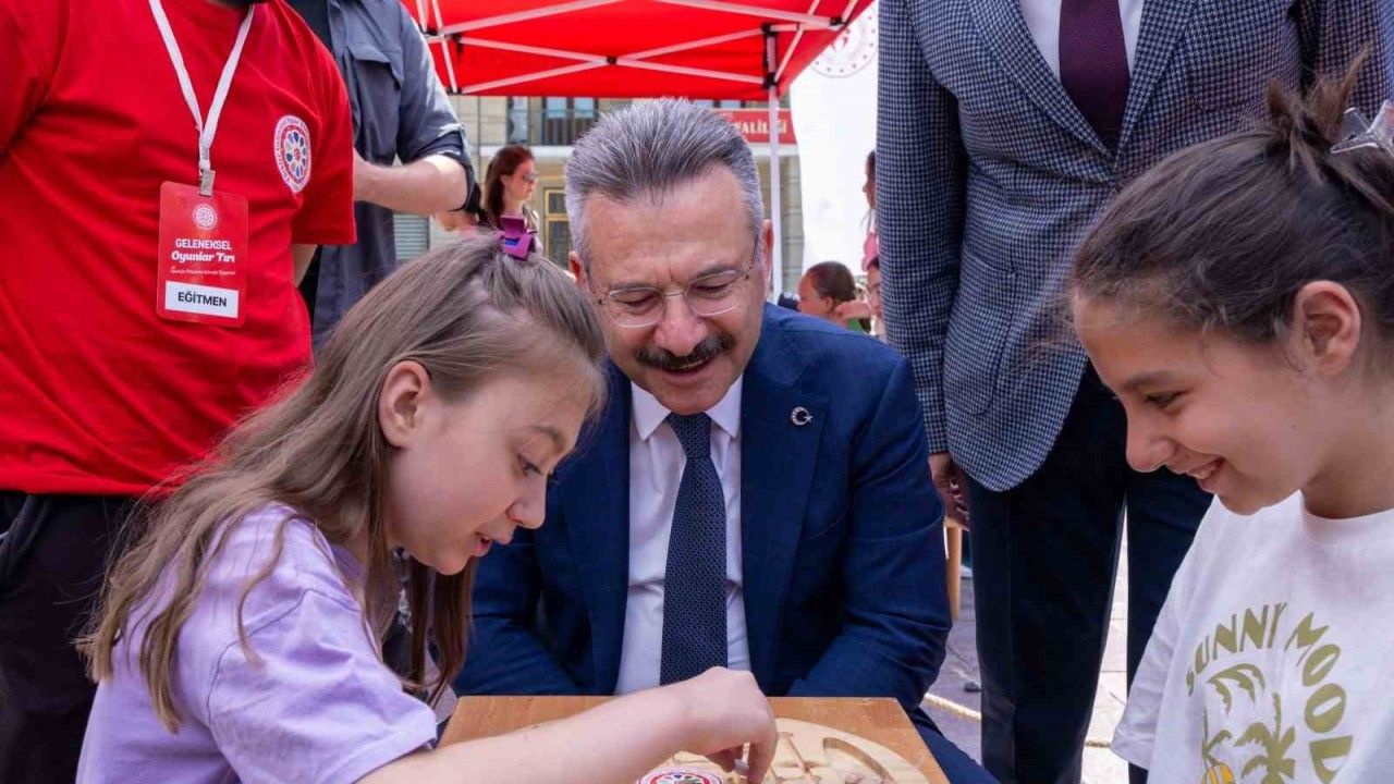 Eskişehir Valisi Hüseyin Aksoy, kültürel mirası yaşatmak ve gelecek nesillere aktarmak amacıyla hayata geçirilen ’Geleneksel Oyunlar Tırı’nda çocuklarla bir araya geldi.
