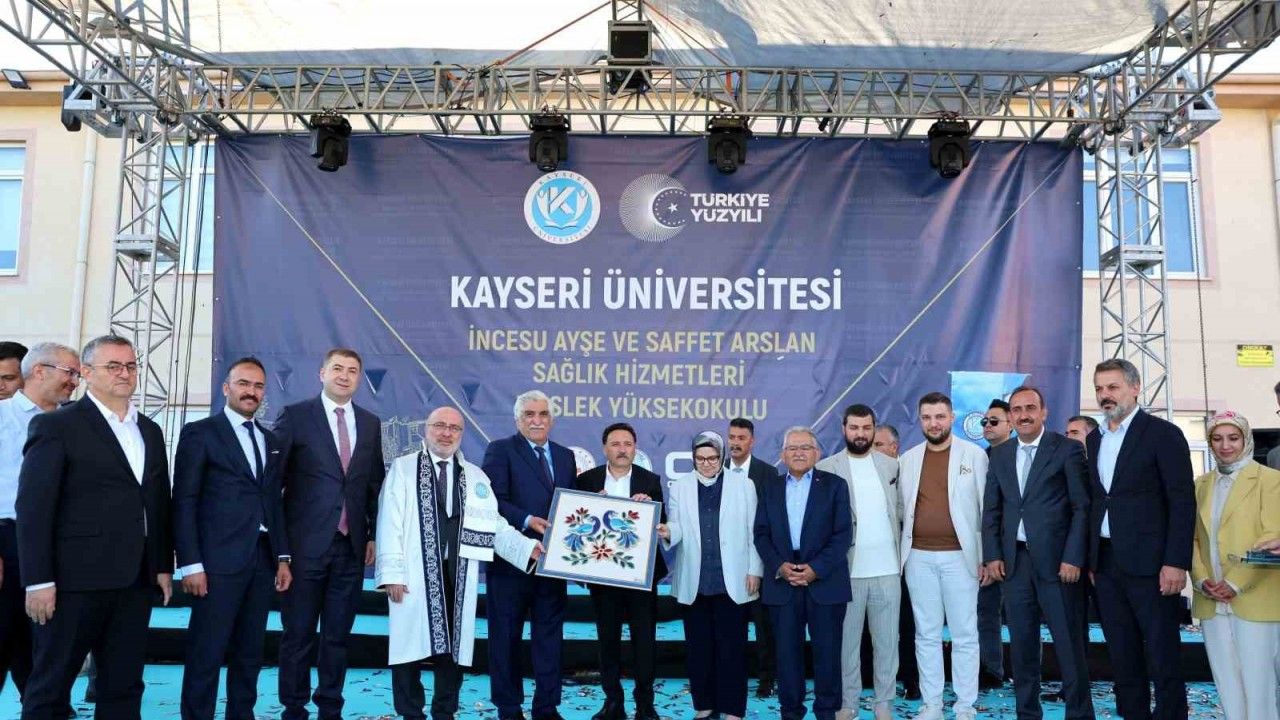 Kayseri Valisi Gökmen Çiçek, Kayseri Üniversitesi (KAYÜ) İncesu Ayşe ve Saffet Aslan Sağlık Hizmetleri Meslek Yüksekokulu tarafından düzenlenen ’Eğitim Binası Açılışı, Mezuniyet ve Şed Bağlama Töreni’ne katıldı.