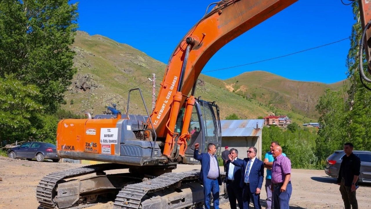 Bayburt Valisi Mustafa Eldivan, merkeze bağlı Yoncalı köyünde yapımına başlanan köy konağı inşaat alanında incelemelerde bulundu.