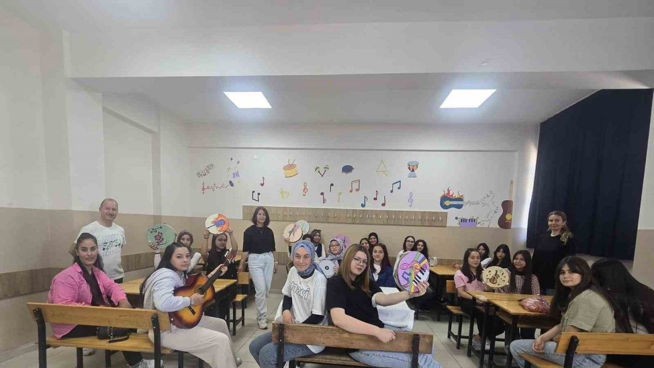 Okul yönetiminin desteği ve müzik kulübü öğretmenlerinin rehberliğinde başlatılan çalışma kapsamında öğrenciler, boş zamanlarını verimli değerlendirebilecekleri bir müzik atölyesine kavuştu. Hem bireysel hem de grup halinde kullanılabilecek olan müzik sınıfı, öğrencilerin iş birliği ve takım çalışması becerilerini geliştirmeyi hedefliyor.